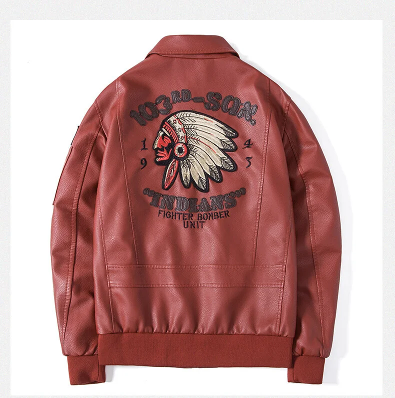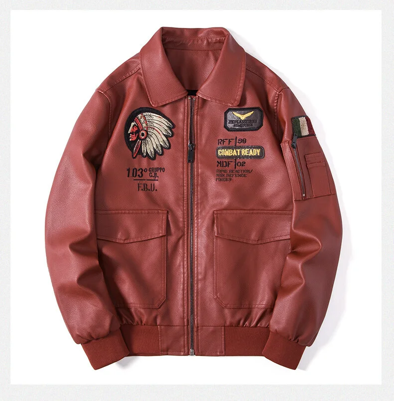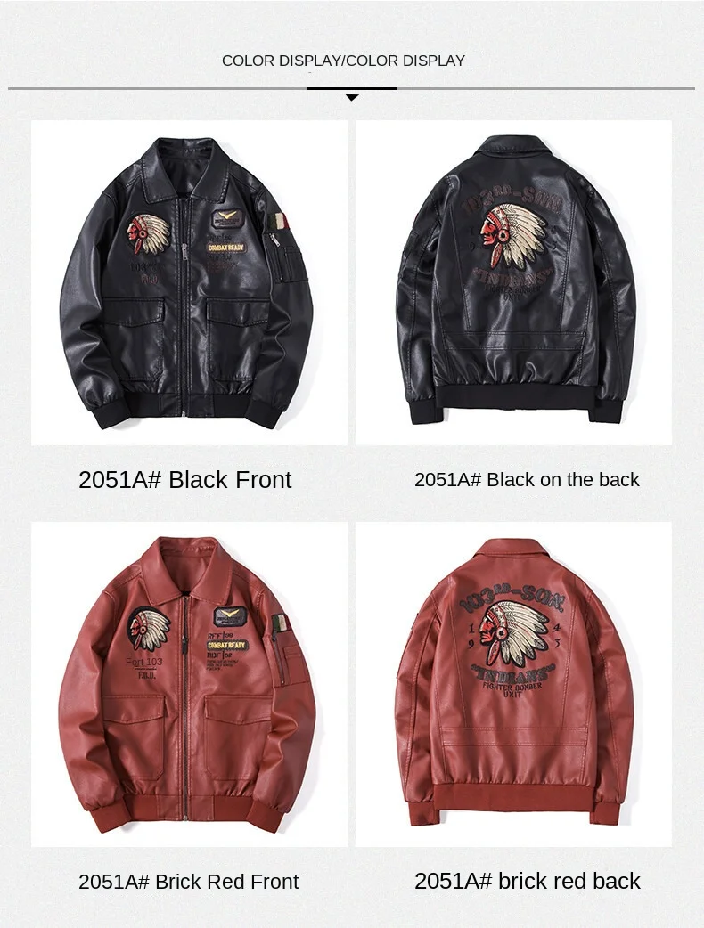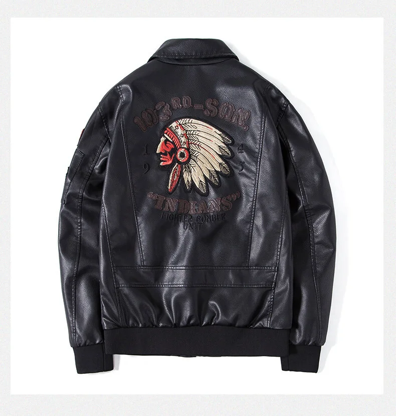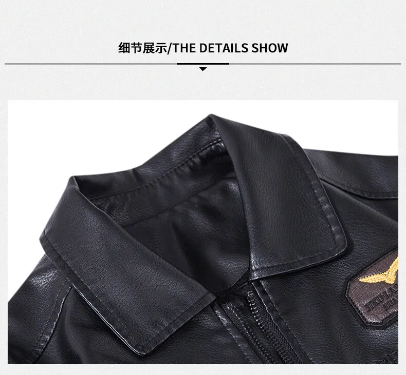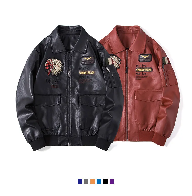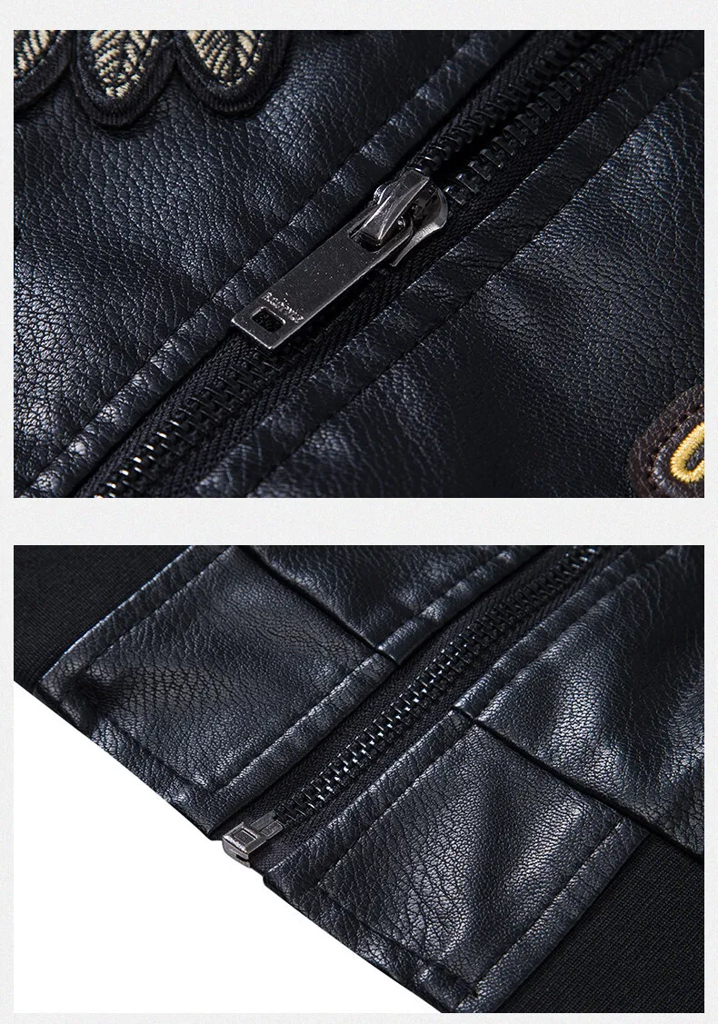 Autumn Winter Men's Leather Jacket Lapel Embroidery Trend Biker Motorcycle Jacket Men's Fashion Casual Windproof PU Bomber Coat